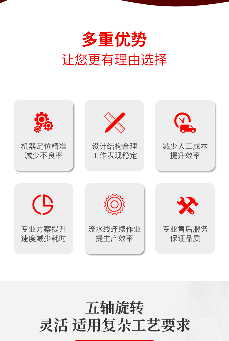 2.高精度五軸機(jī)構(gòu),采用進(jìn)口品牌,保證設(shè)備的精度和穩(wěn)定性。