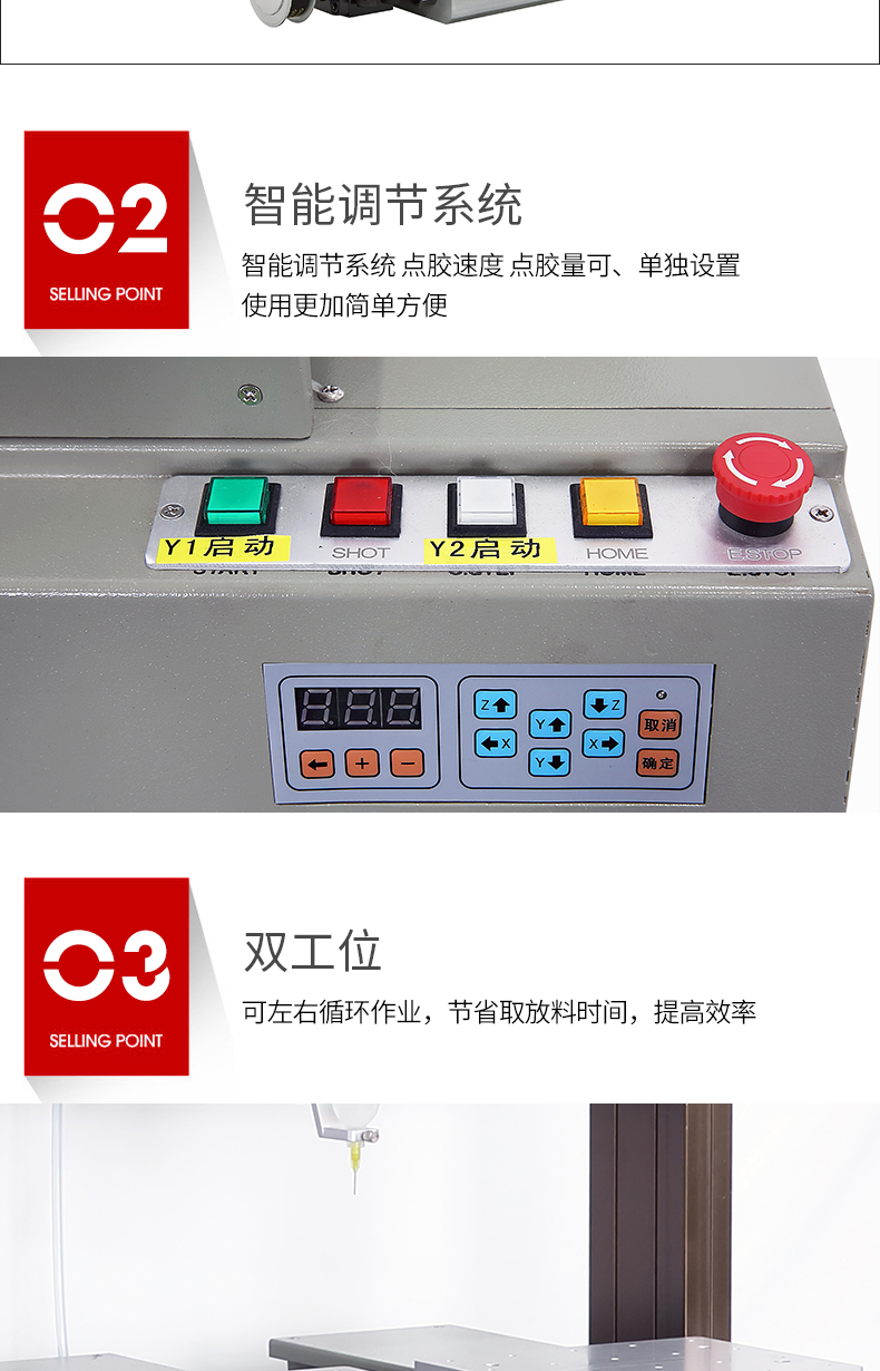 4. 機臺上帶有對針頭的控制按鍵,不需外接教導(dǎo)器,比同類產(chǎn)品調(diào)試 更加方便。