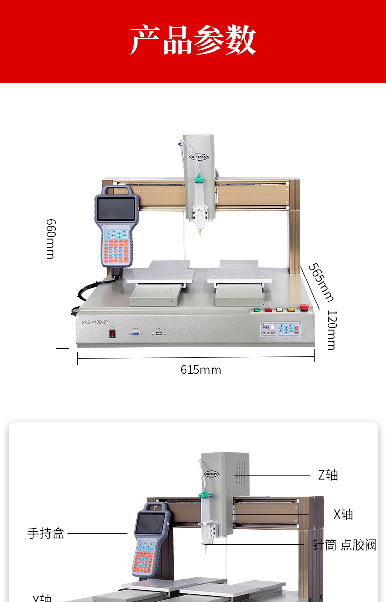 1. 可替代人工的特定點膠作業(yè),實現(xiàn)機械化生產(chǎn)。
